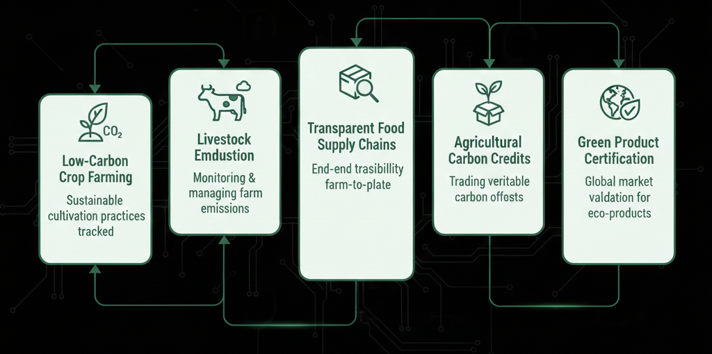 The network adopts a Proof-of-Stake (PoS) consensus mechanism, supports smart contracts, and integrates an NFT marketplace for on-chain certification of farms, agricultural products, and emissions reduction projects. Its architecture is comparable to Ethereum but is specifically optimized for agriculture and food traceability use cases, including low-carbon farming, livestock emissions reduction, and transparent food supply chains.
